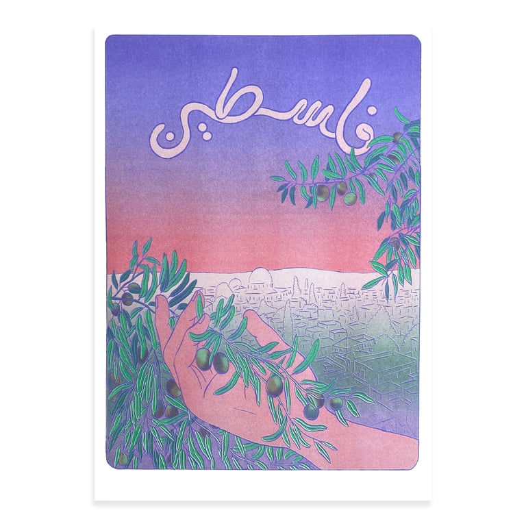3-colors A3 riso print in limited and signed edition. Proceeds go to CareForGaza, a non-profit charity in aid of helping the needy families of Gaza.